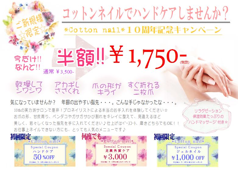 香川県 高松市 にある 癒しの ネイルサロン *Cotton nail* (コットンネイル)高松本店のスタッフBlog。ネイル・ジェルネイル・ネイルケア・フットケア・フットジェル・どんなメニューもおまかせください^^