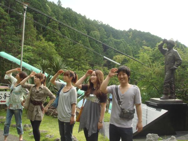 よくわからない銅像があったので、隊長ERIさんの指示ではい、ポーズ