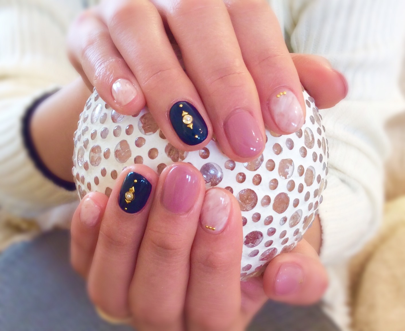 親指と中指のピンクはローズっぽくカラーミックスしましたー♪