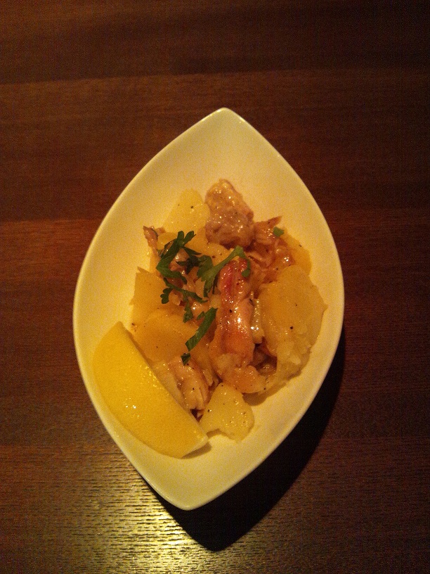 こりこりのせせりとホクホクのじゃがいも、ガーリックとアンチョビが絶妙です