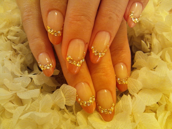 こちらはコッパーのフレンチにキラキラのビジュー