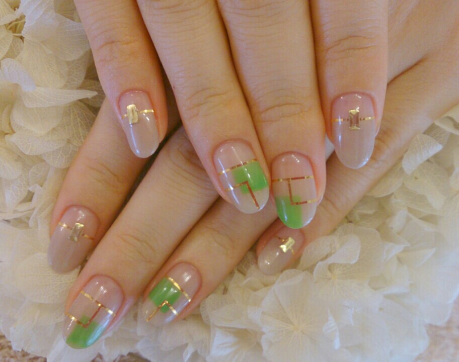 グレージュベースにグラスグリーンでブロッキング