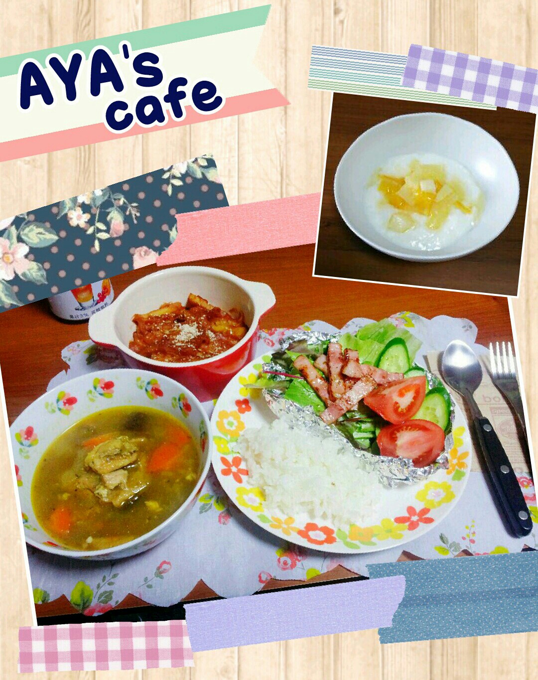 えりさんが切ってくれた100均テーブルクロスからの使い捨てランチョンマットも大活躍です(笑)(´∀`*)