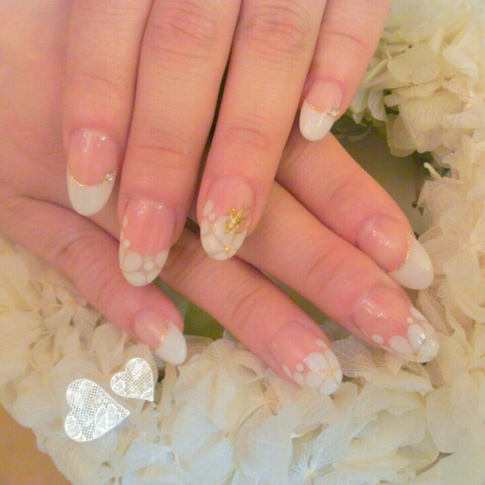 シンプルですがとっても可愛らしいブライダルネイル♡