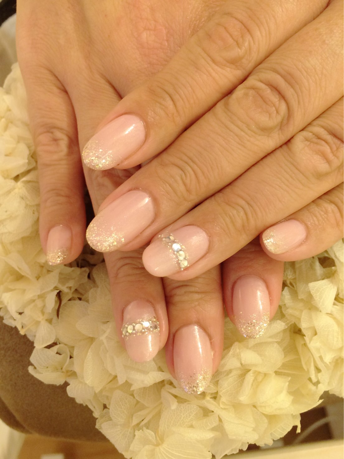 シアーなピンクとラメ