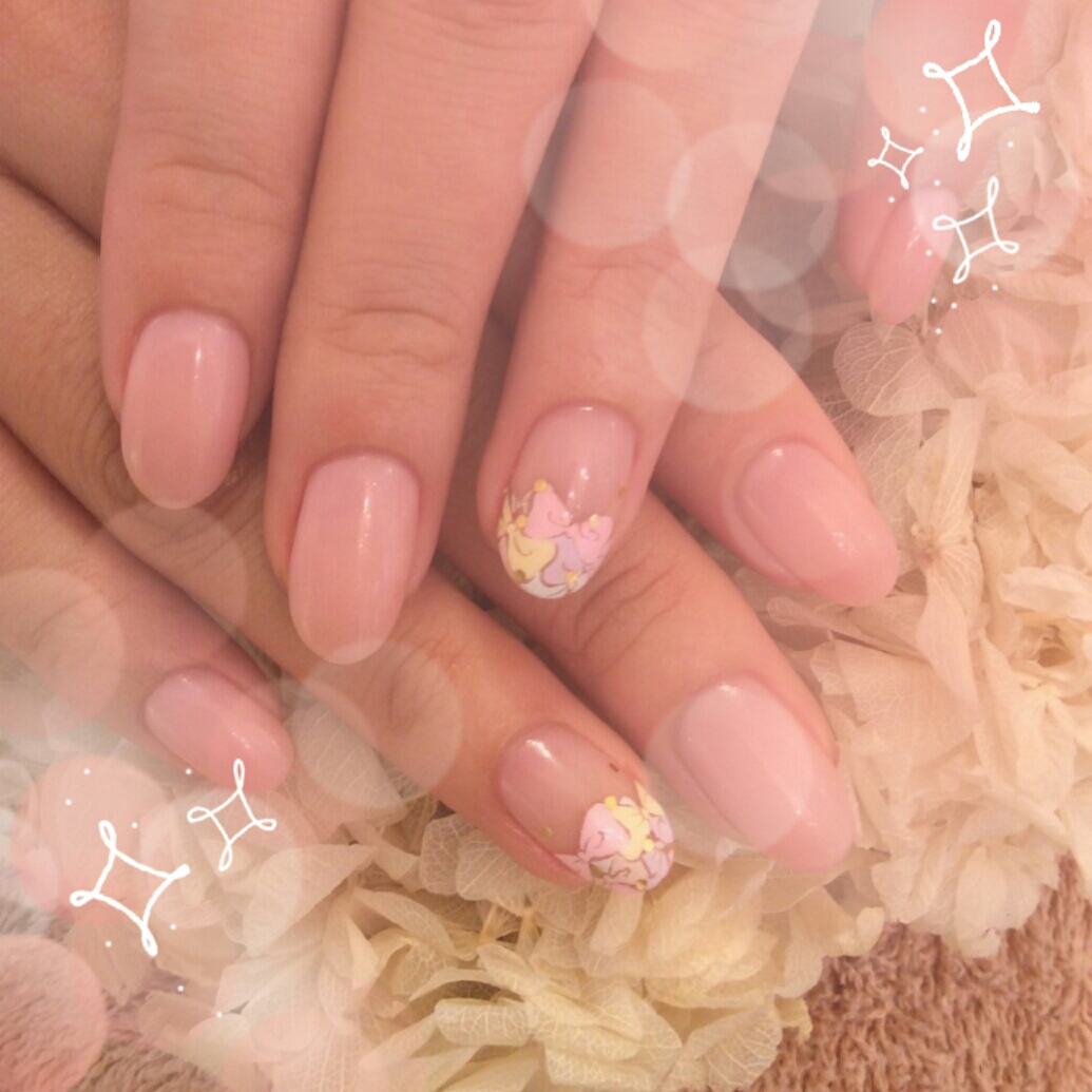 淡いナチュラルカラーにワンポイントだけペイントのリボンが入ってます♡