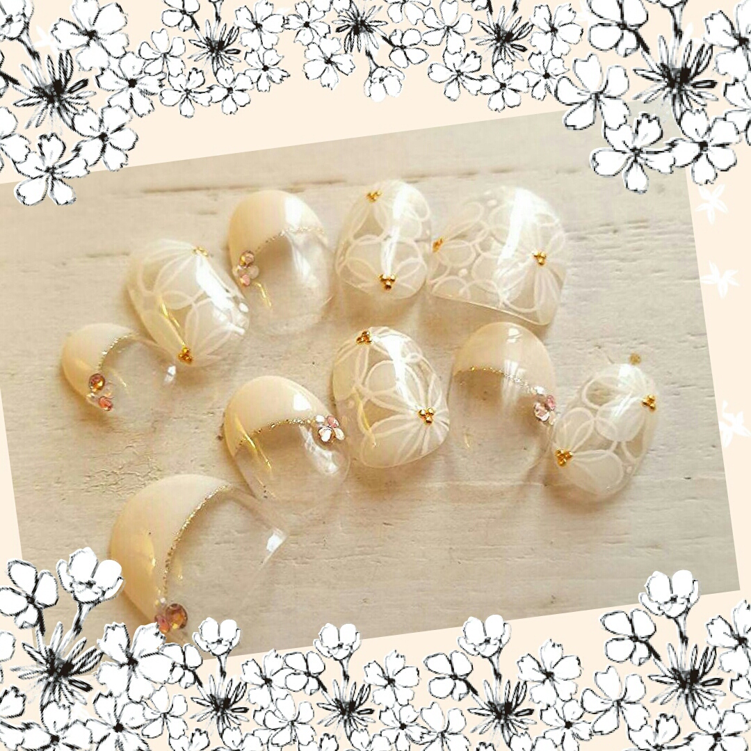 オフホワイトのフレンチ&花柄がなんとも可愛い♡