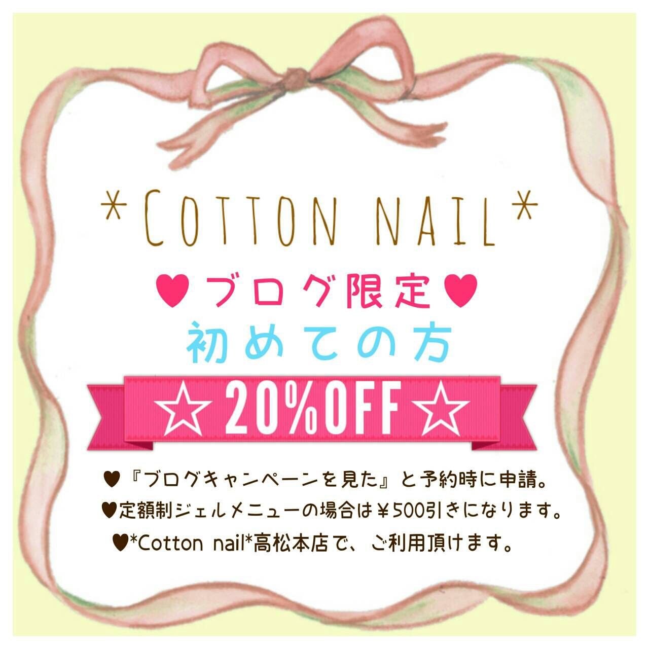 香川県 高松市 にある 癒しの ネイルサロン *Cotton nail* (コットンネイル)高松本店のスタッフBlog。ネイル・ジェルネイル・ネイルケア・フットケア・フットジェル・どんなメニューもおまかせください^^