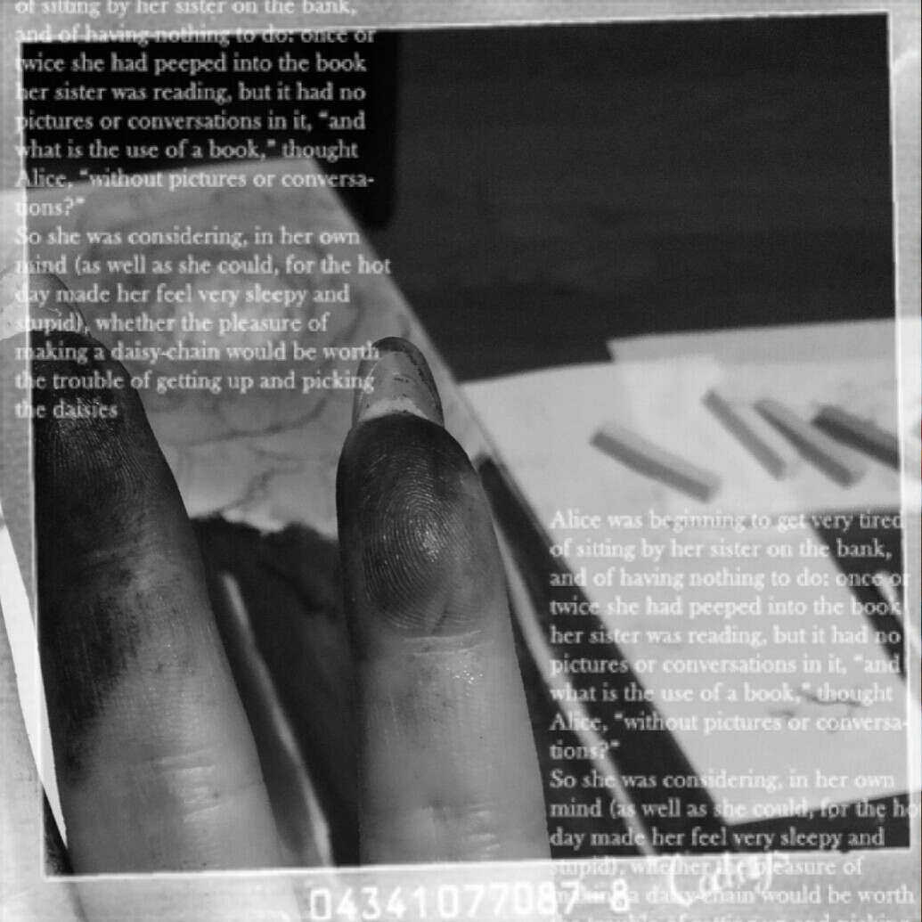 指先を真っ黒にしながらパステルと格闘…
