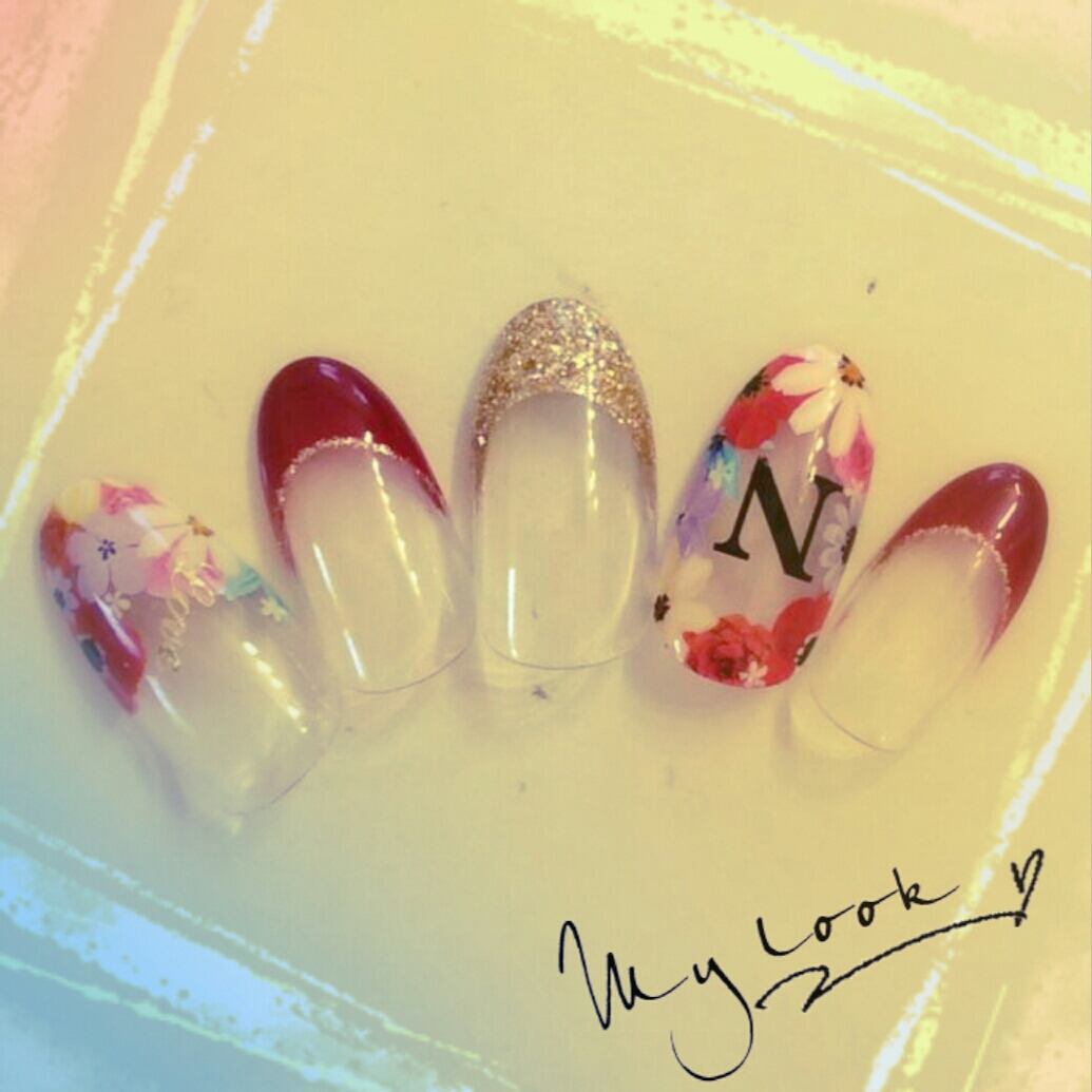 なかなか手にはチャレンジしにくい赤ですが、フレンチにするとけっこうしっくりくるデザイン♡