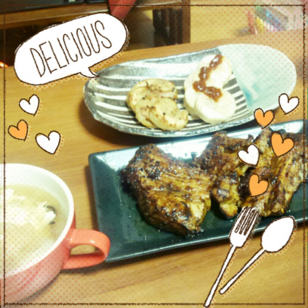 やっぱり誰かが作ってくれたごはんは美味しいですね~Ψ( ''ч''♡ )